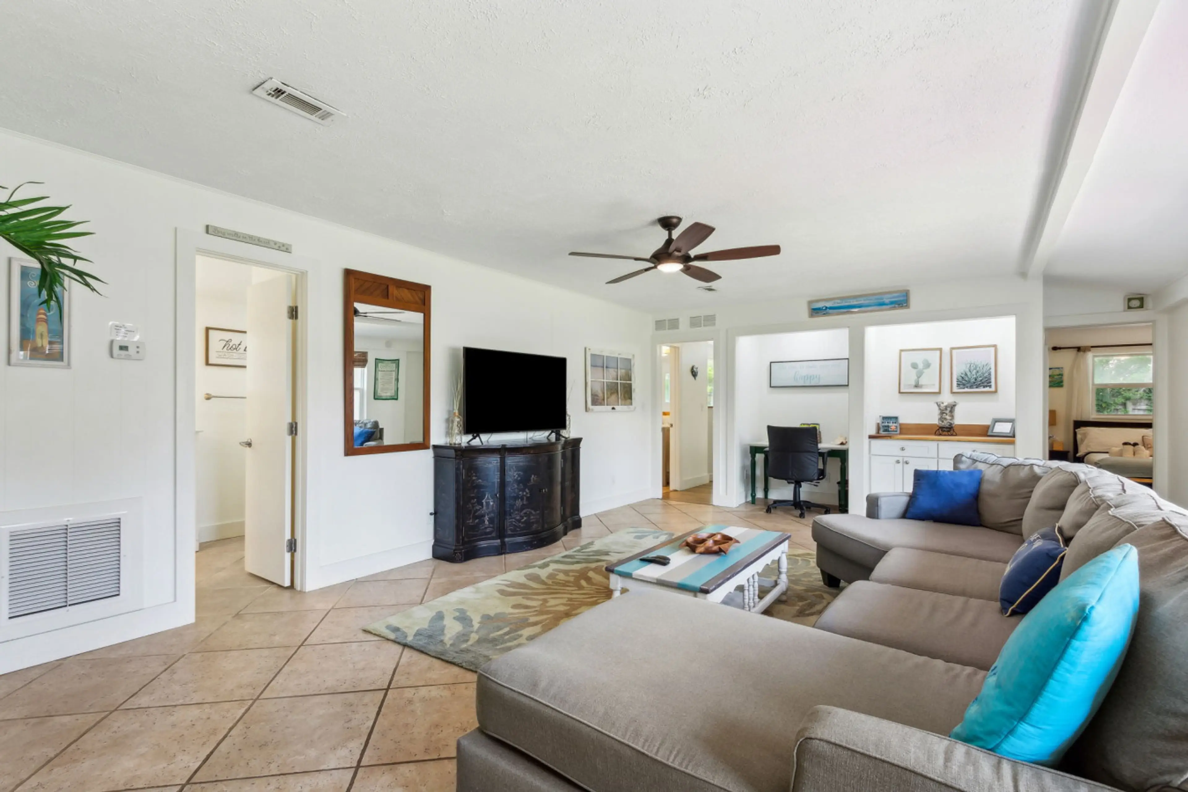 Ready for some beach vibes? This home is VERY spacious! Two HUGE living rooms! Great for families! Interior has been fully renovated recently! Beach essentials included. Large fenced in backyard with patio (grill included) and bikes to explore the town and nearby beaches (approx. 1 mile straight...
